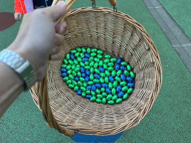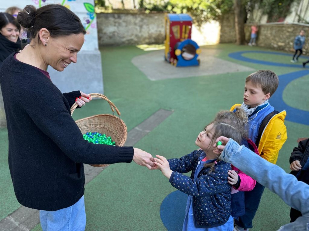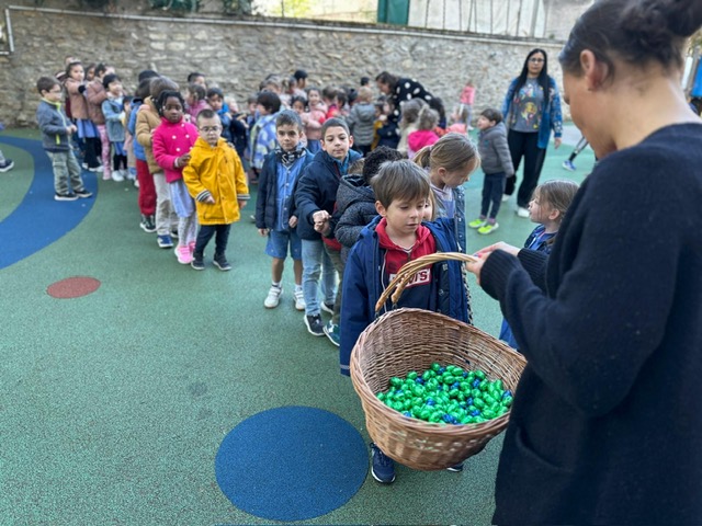 Puis, dans la cour a eu lieu une chasse aux oeufs, symbole de la vie, de la renaissance. Une fois les oeufs trouvés et ramassés, nous les avons partagés et dégustés !