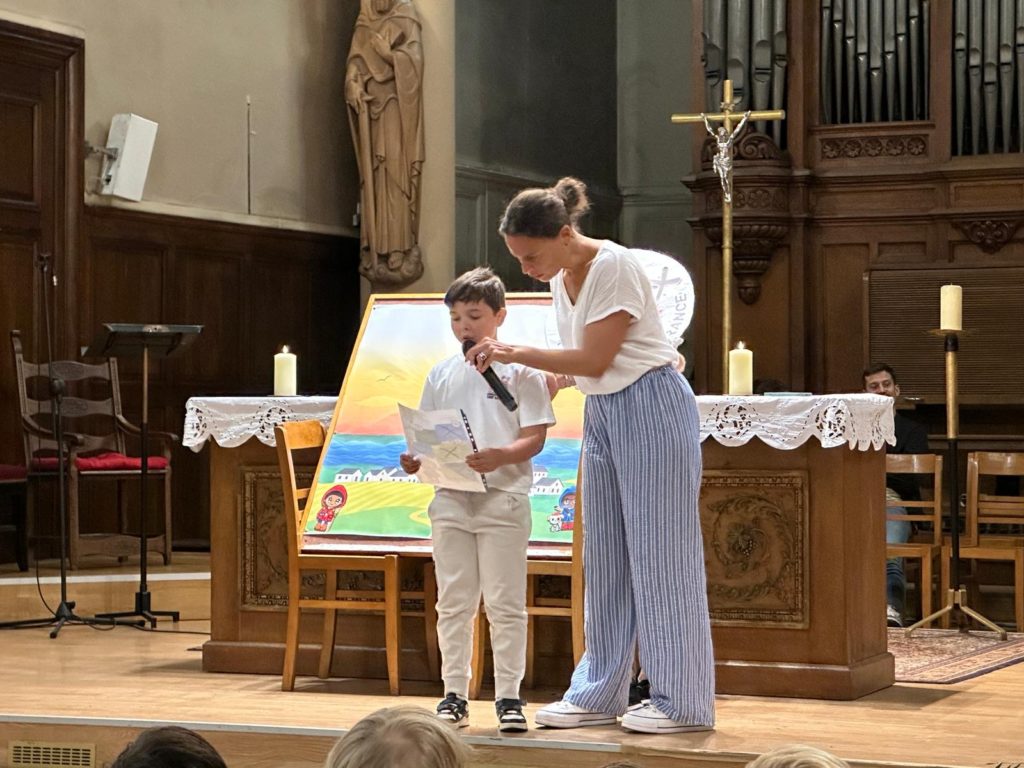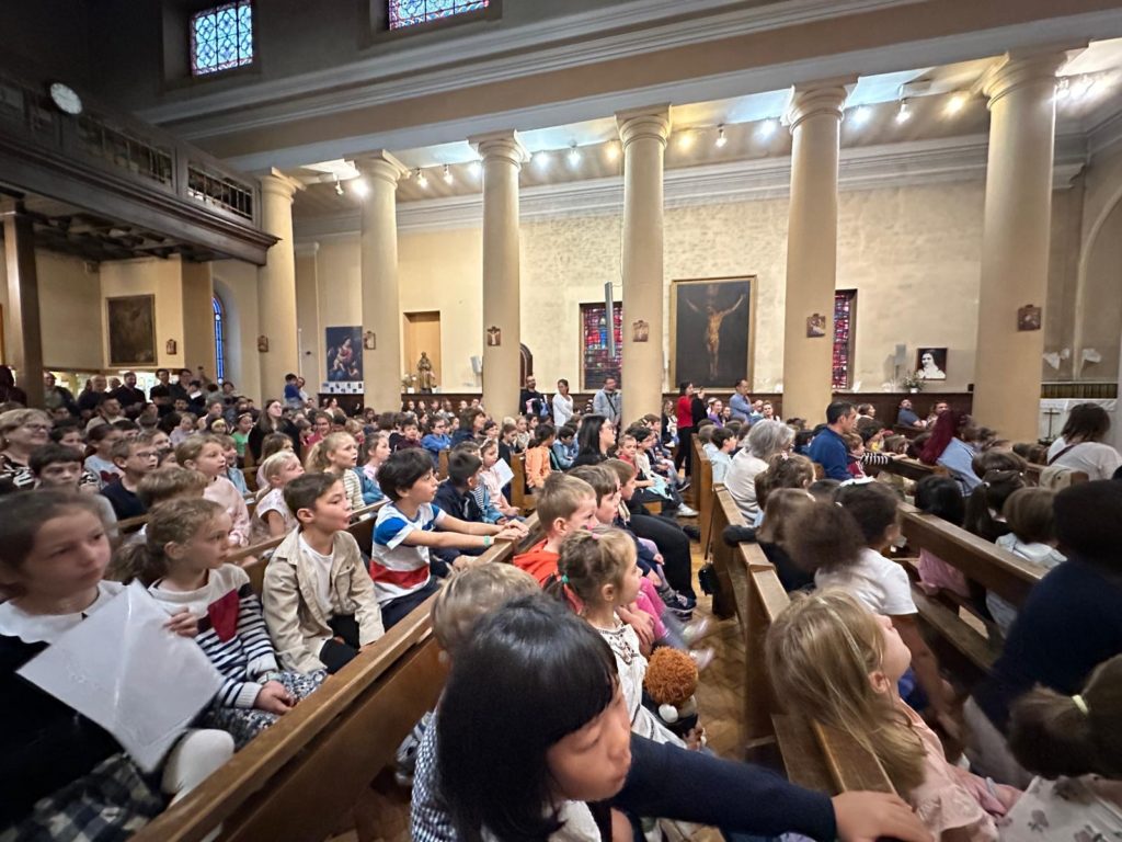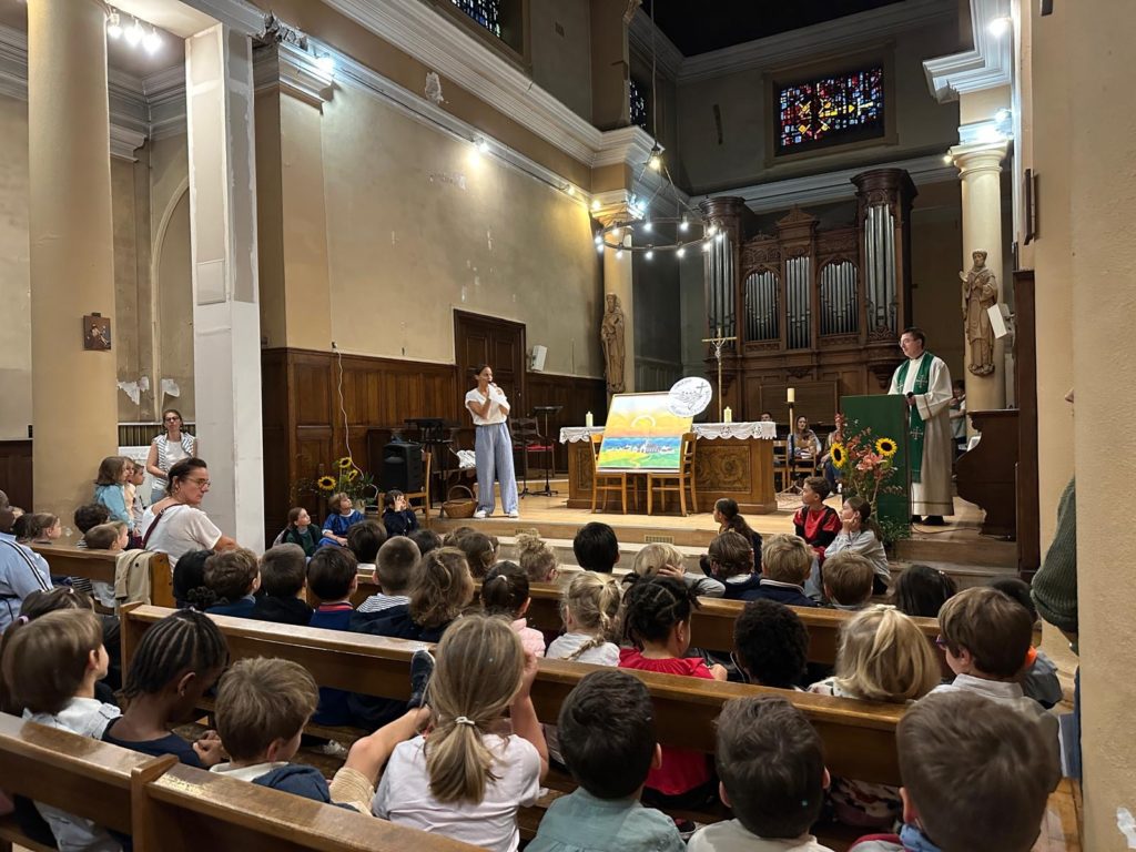 Toute la communauté éducative s’est rassemblée dans l’église Saint-Pierre Saint-Paul pour la célébration de rentrée. Notre nouveau prêtre accompagnateur, le Père Guillaume, était avec nous.