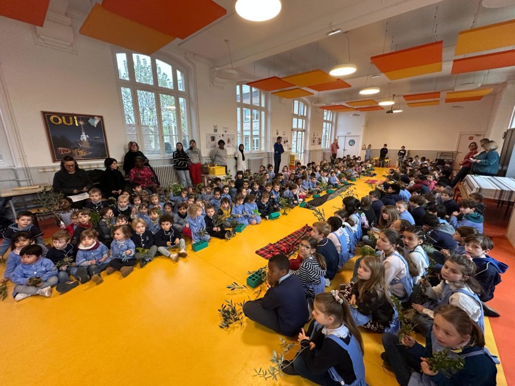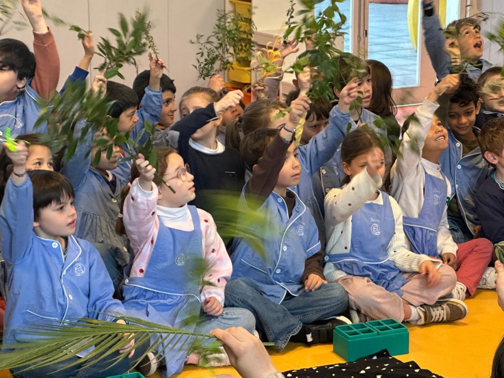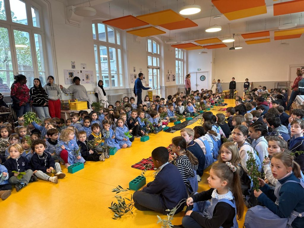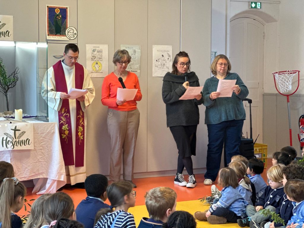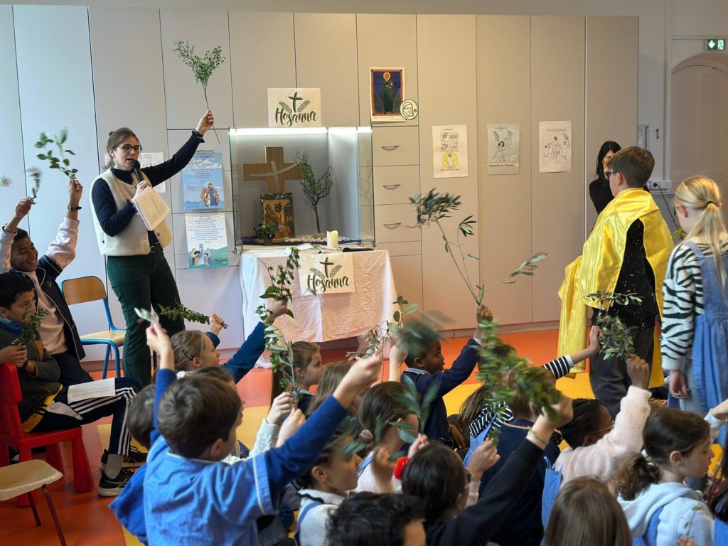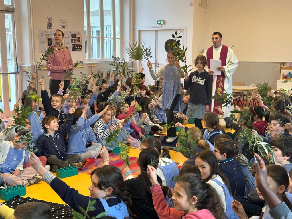 Vendredi 27 mars, nous nous sommes tous rassemblés, rameaux à la main, dans la grande salle pour célébrer, avec un peu d’avance l’entrée de Jésus à Jérusalem en chantant « Voici celui qui vient au nom du Seigneur, acclamons notre roi, Hosanna! ».