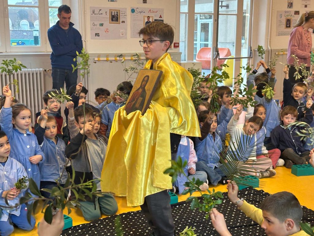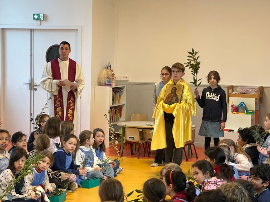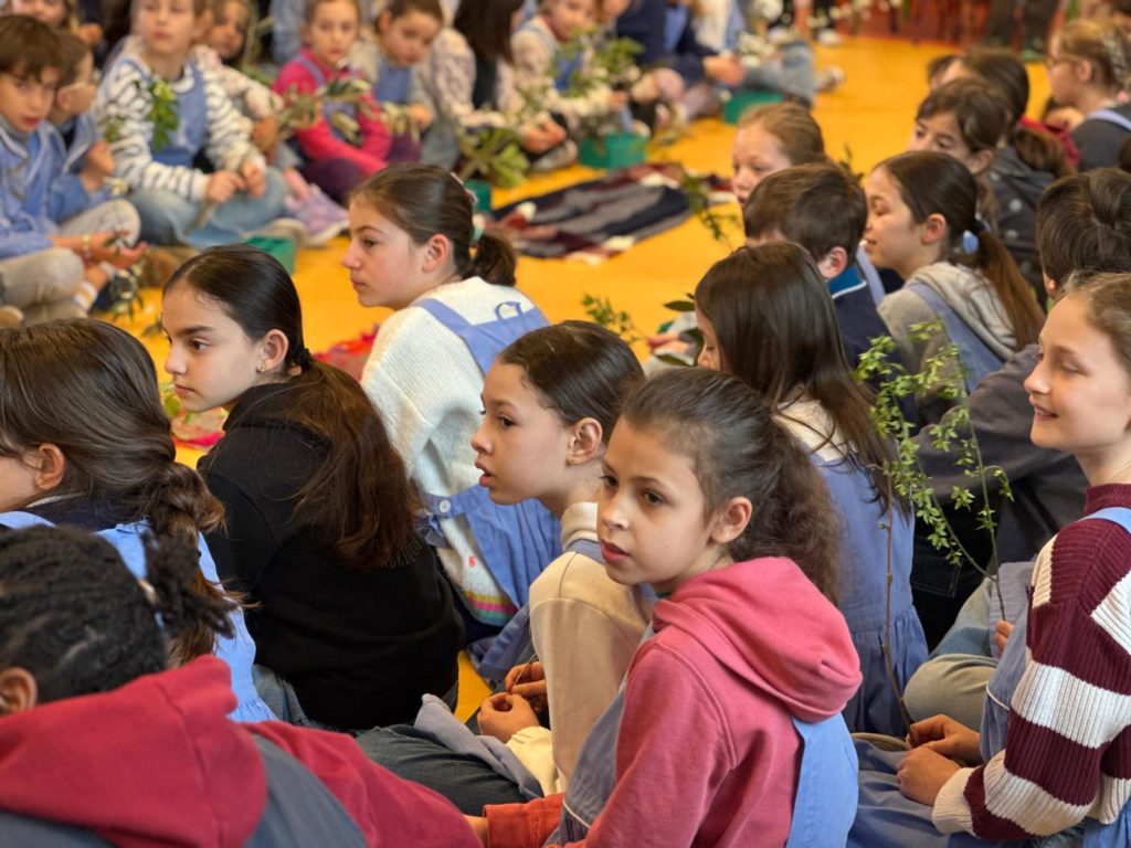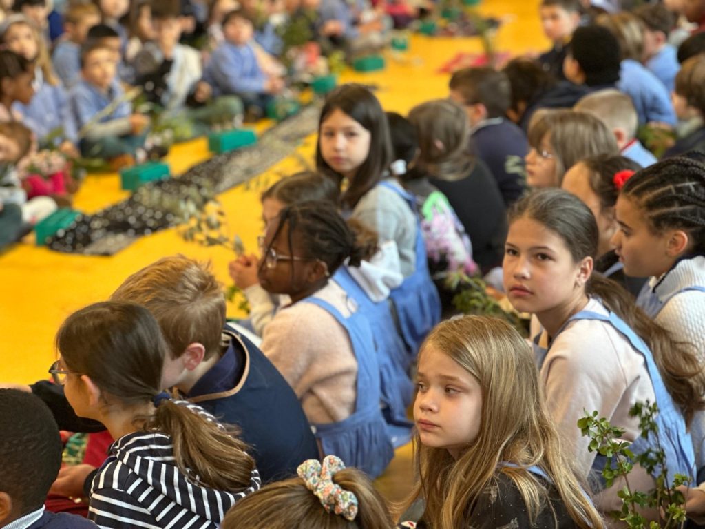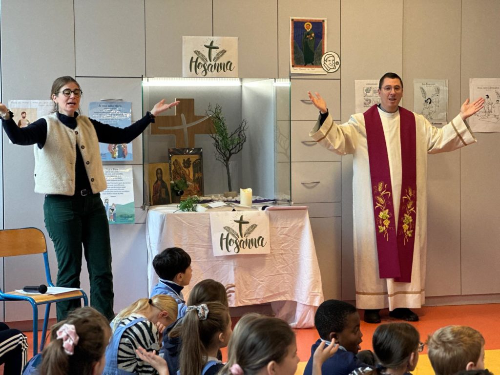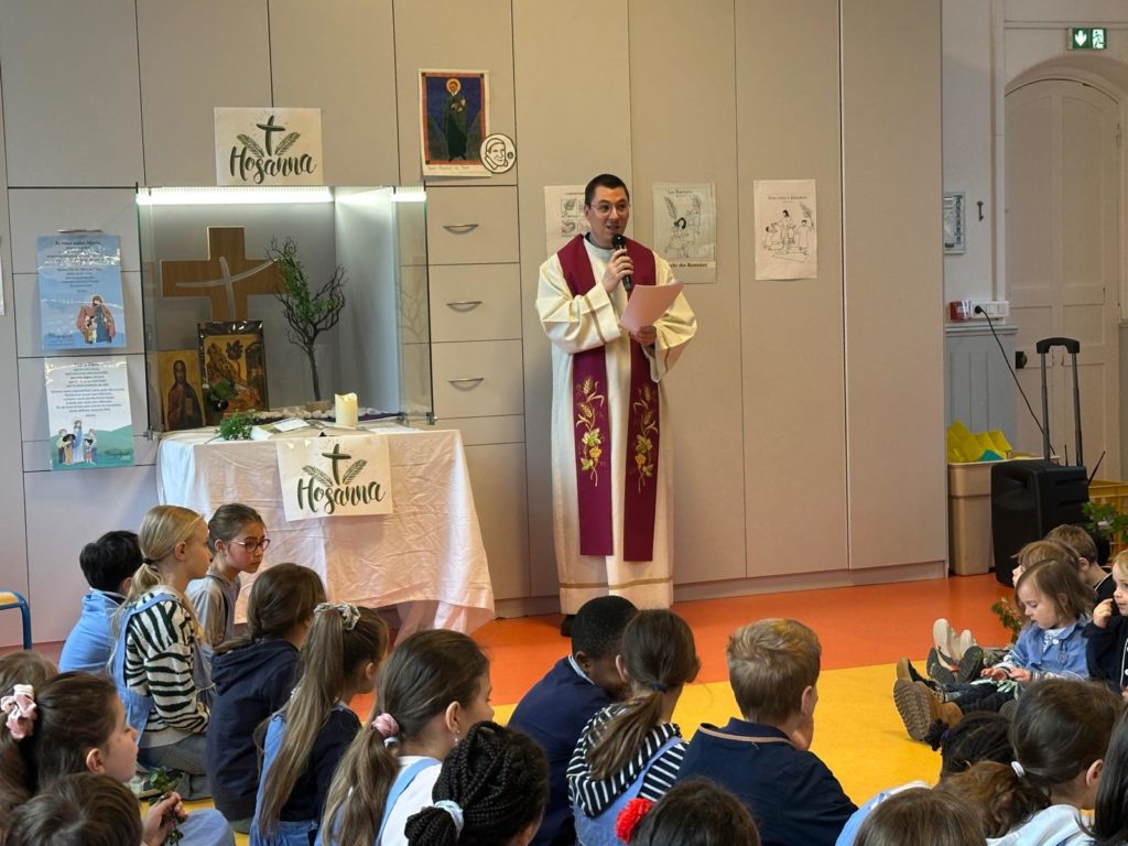 Vendredi 27 mars, nous nous sommes tous rassemblés, rameaux à la main, dans la grande salle pour célébrer, avec un peu d’avance l’entrée de Jésus à Jérusalem en chantant « Voici celui qui vient au nom du Seigneur, acclamons notre roi, Hosanna! ».