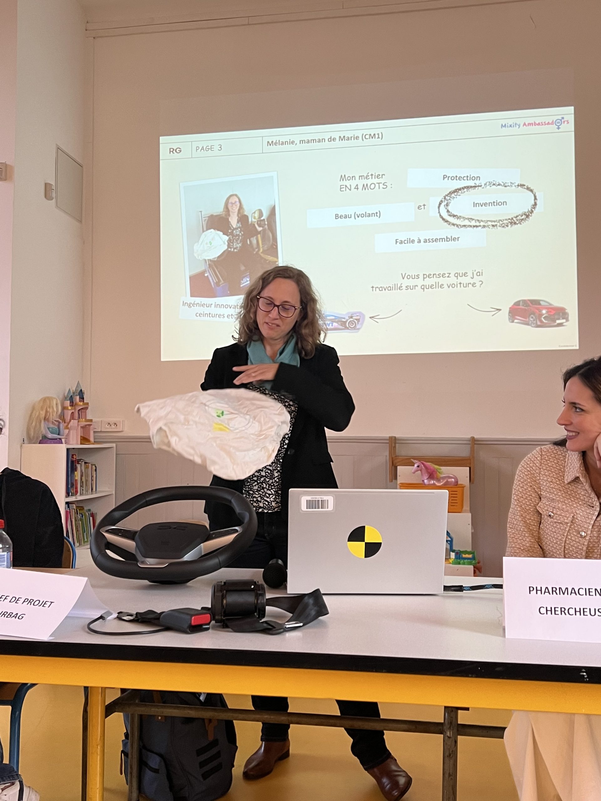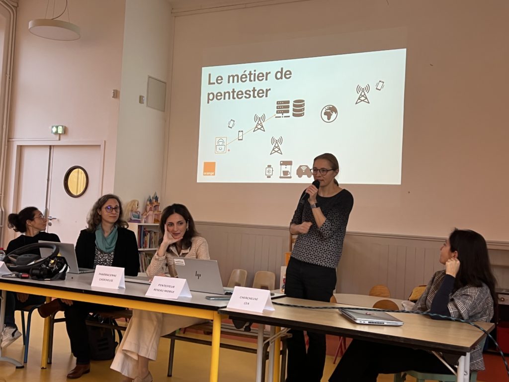 Différents métiers ont été présentés: Chercheuse « cerveau » au CEA, Pentester chez Orange, Pharmacienne/enseignante chercheuse à l’Université Paris Saclay, Chef de projet AirBag chez Renaut, Ingénieur/recherche biologique au CEA, Acheteuse Centrale Nucléaire chez EDF.