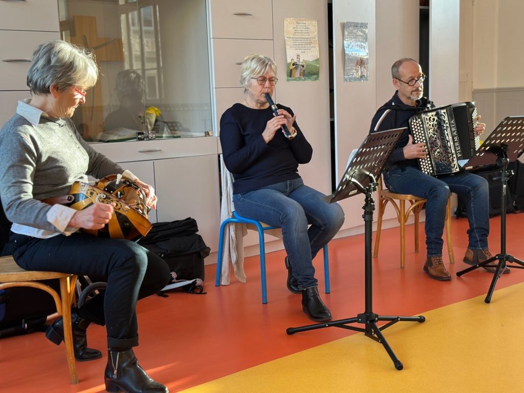 Ce matin Michèle, Annick et Pascal son venus tout droit d’Auvergne pour nous faire découvrir la musique et la danse folklorique !