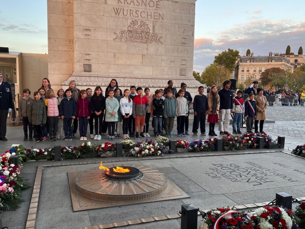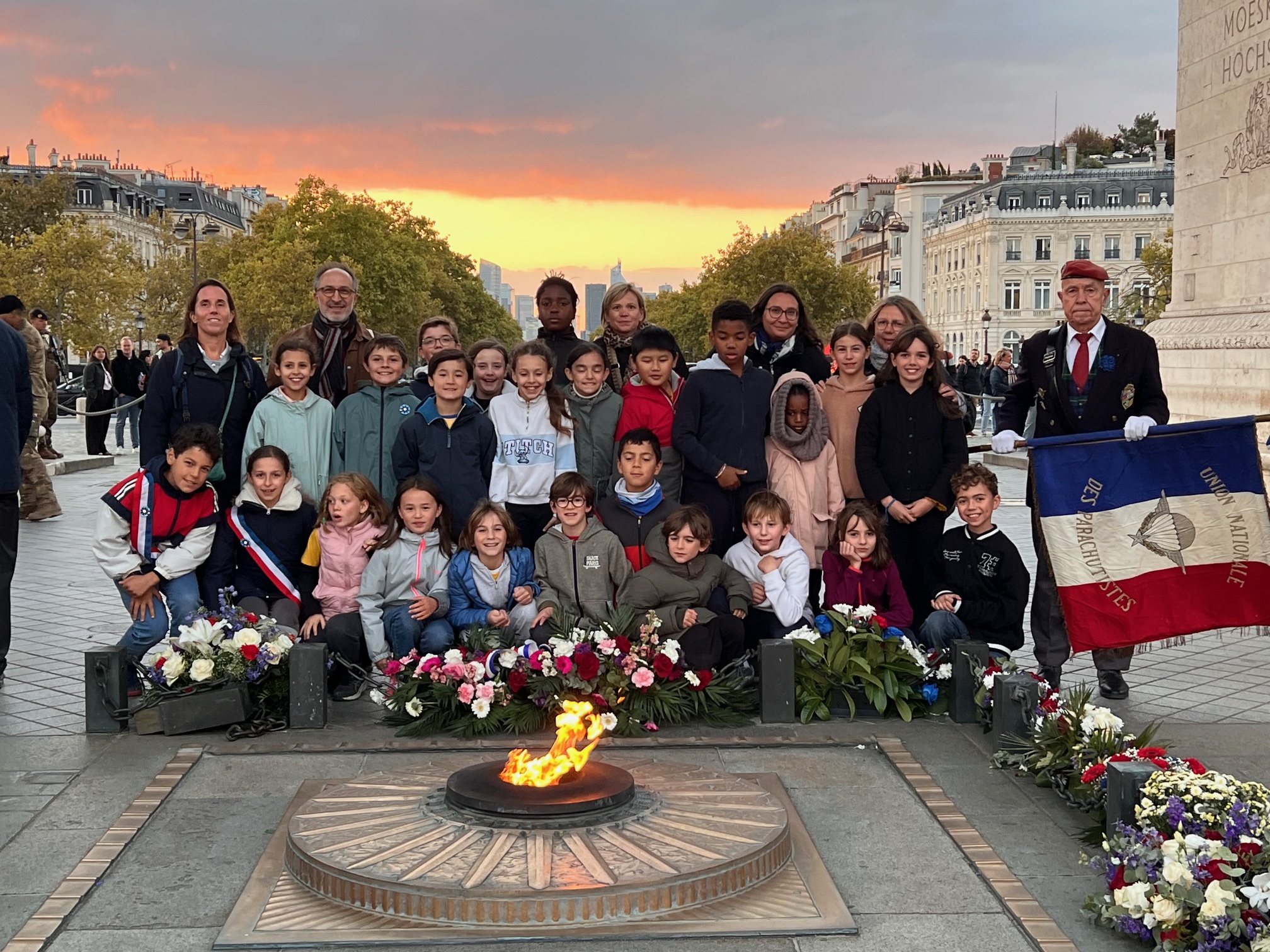 Les CM2 se sont rendus sous l’Arc de Triomphe pour participer au ravivage de la flamme du soldat inconnu.