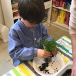 Ils ont ensuite rempoté un peu d’herbe dans un pot de yaourt: