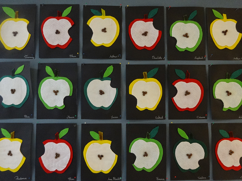 « Nos productions d’arts plastiques autour de la pomme! » 08 Nov 2015 Par Eleonore Delhomme Voici nos diverses productions autour de la pomme! Les pommes reconstituées avec des bandes de papier (MS): Les trognons de pommes au pochoir (PS et MS): Les pommes croquées à la feutrine (MS): Les pommes entières (PS): Les pommiers (PS): Et voici vos enfants à l’ouvrage ! Publié dans: Diaporama, Moyenne Section de Maternelle